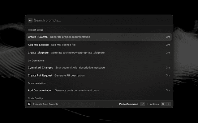 • Quick execution - Paste Amp commands directly to your terminal or copy to clipboard