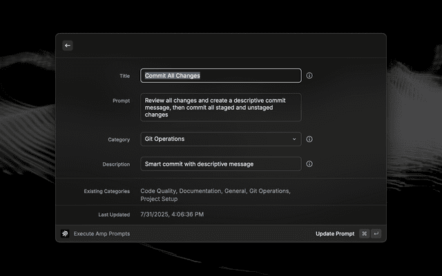 • 📋 Save and organize prompts - Store your frequently used Amp prompts with titles and descriptions