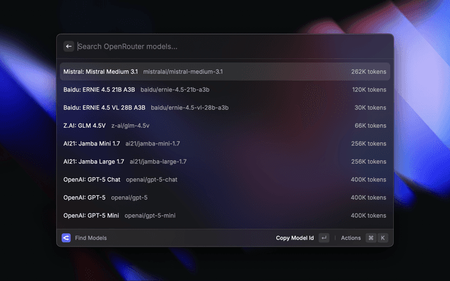 Search and copy AI model IDs from OpenRouter to clipboard