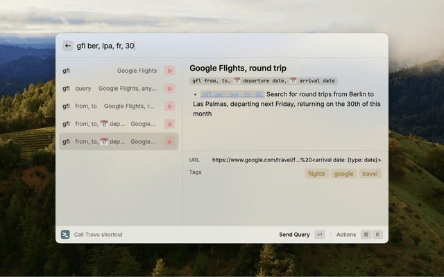 This extension allows using trovu.net from Raycast, including the instant suggestions.