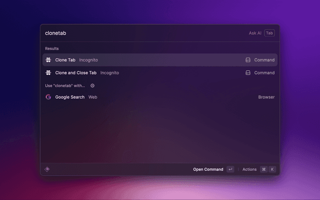 Open the URL of the currently active tab in an Incognito (Chromium-based) or private (Webkit-based) browser window.