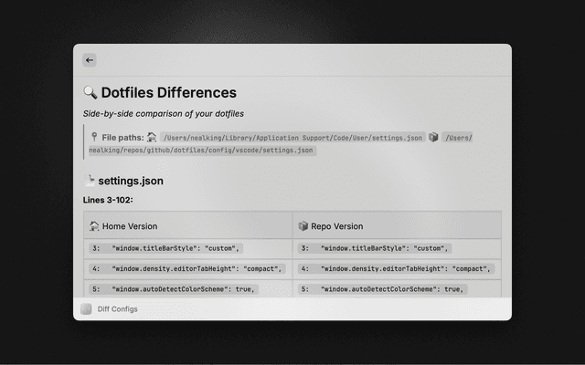 A powerful Raycast extension for managing your dotfiles with ease. Keep your configuration files synchronized between your local machine and your dotfiles repository.