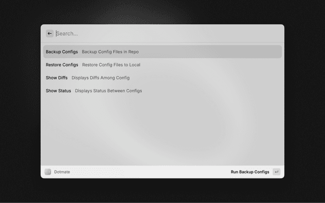 • Backup Configs: Backup your local configuration files to your dotfiles repository