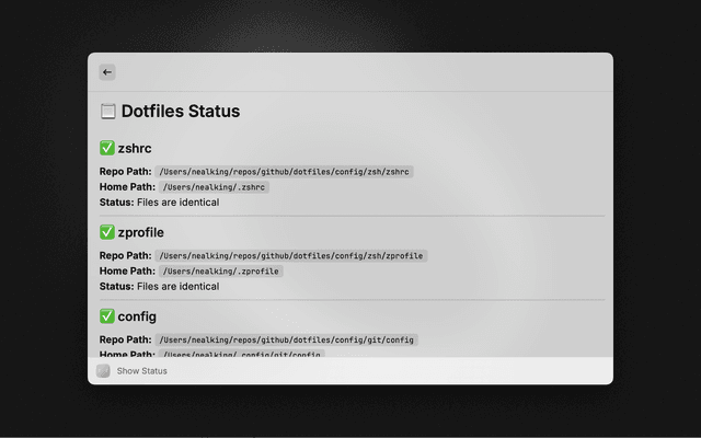 • Show Status: Check the synchronization status of your dotfiles