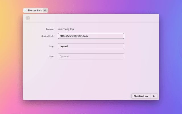 You can set default domain for Shorten Link and Search Links commands via the Shorten Link With Domain command (action: Set Default Domain, shortcut: Cmd+Enter).