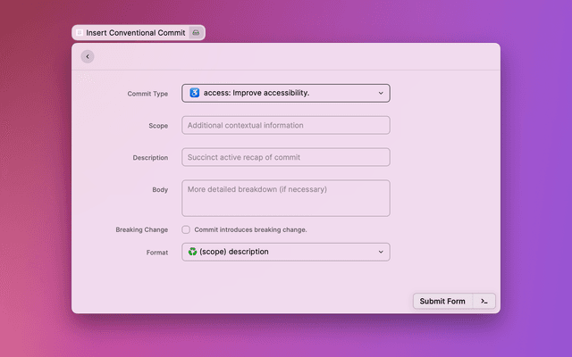 Paste conventional commits into foremost application using Raycast !