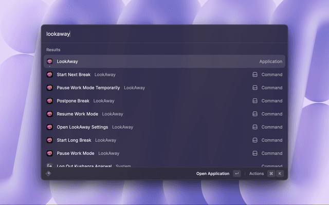 Control the LookAway macOS app using Raycast.