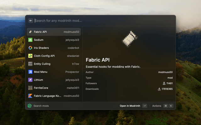 Search more than 10000+ Minecraft creations from Modrinth.