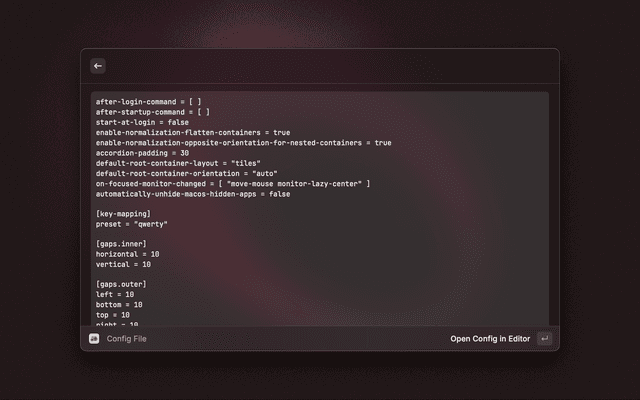 • Use the Aerospace Shortcuts command to view all shortcuts parsed from your config file
