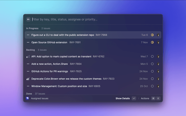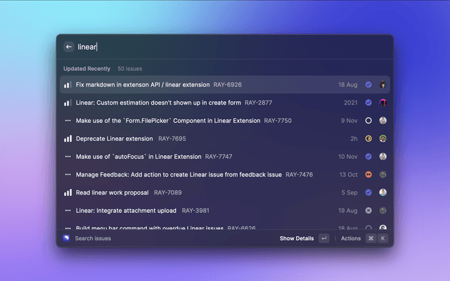 Bring Linear to every corner of your Mac. Create, search, and modify your issues. Stay on top of your notifications in the menu bar.