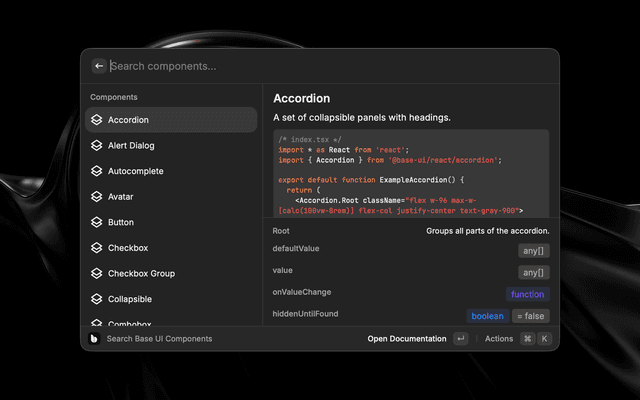 A Raycast extension to browse Base UI component documentation.