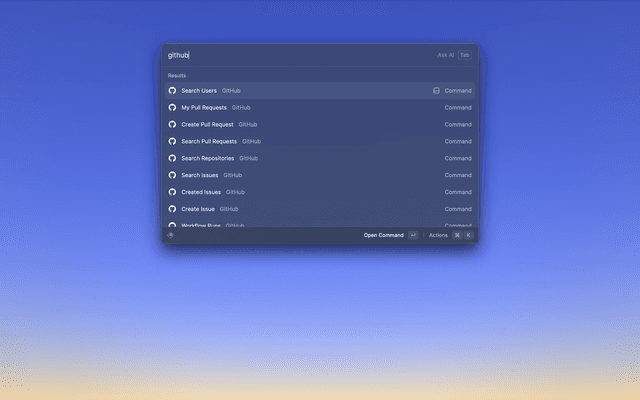 Work with issues, pull requests, manage workflows, search repositories and stay on top of notifications