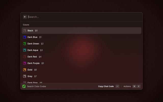 View and copy Minecraft chat color codes.