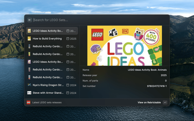 Look up LEGO sets, colors, bricks etc.