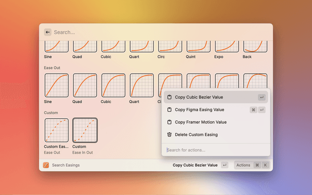 - Search: Search through your custom easings