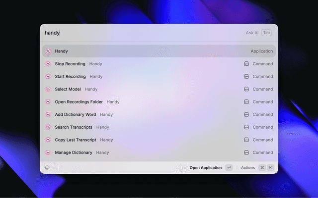 | Toggle Recording | Toggle Handy's transcription recording on/off |