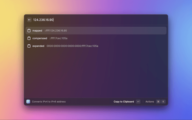 Converts IPv4 to IPv6 address