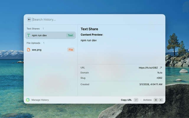 - History Management: Browse, search, and manage all your shared items in one place