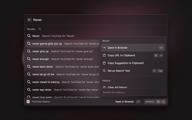 YouTube search with autosuggestions is an extension for Raycast.