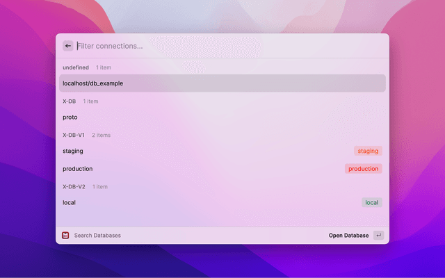 search and connect databases via sequel ace
