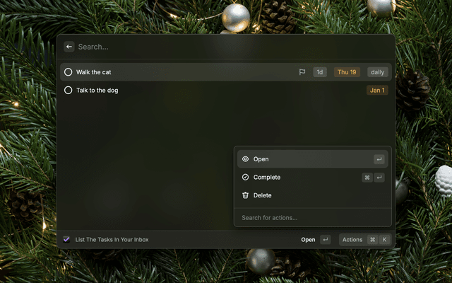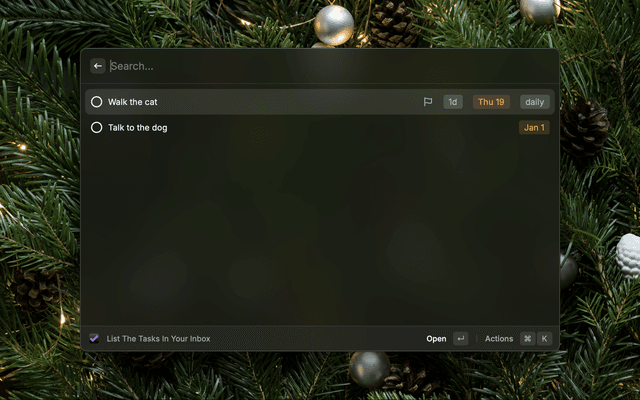 Quickly add a task to your OmniFocus inbox directly from Raycast. Simply type your task and hit enter.