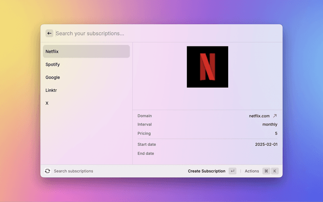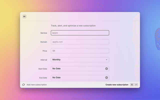Turn subscription chaos into financial harmony. Subwatch helps you track, alert, and optimize your subscriptions effortlessly.