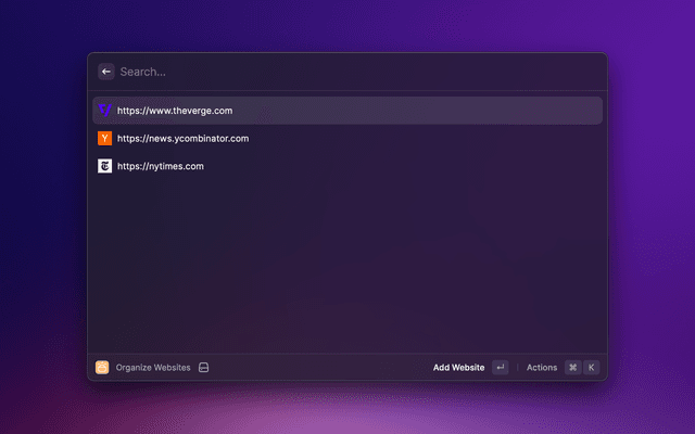 Morning Coffee is your Raycast extension with which you can easily organize routine web readings. Organize the websites you want to open simultaneously in your default browser and set a hotkey for launching 'Open Websites'.