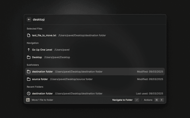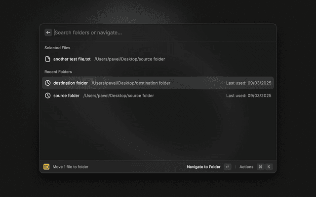 • Cmd+Return: Move files to the selected folder