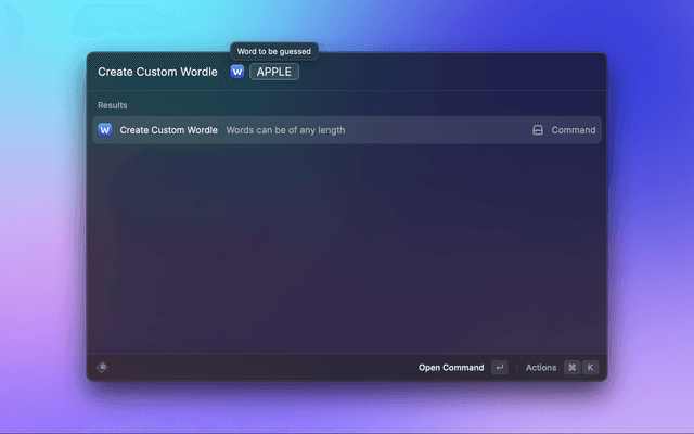 Get a link to play Wordle with your own word, and share it with others. Words can be of any length.