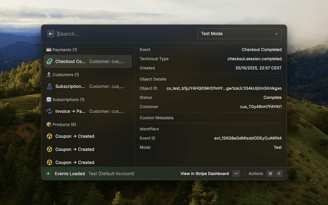 Manage multiple Stripe accounts with different environments seamlessly from Raycast!