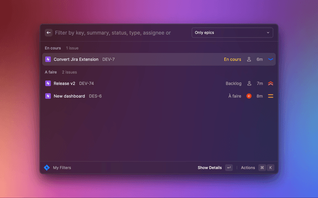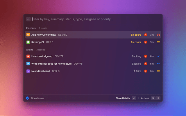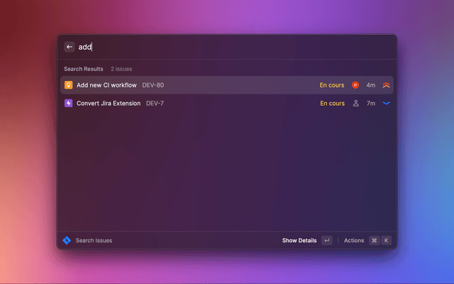 2. Select any command from the Jira extension, then press + K and scroll down to Configure Extension. Enter your email, API token, and Jira site URL (without https://) on the right. Note that all three must be provided to use API tokens.