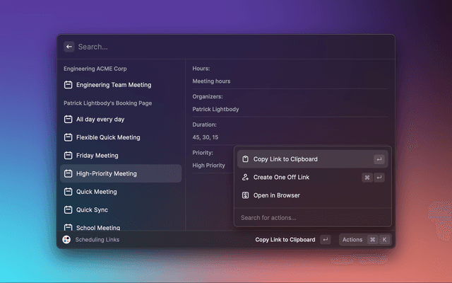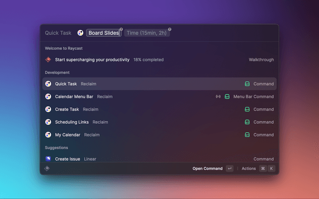 - Open Raycast on your desktop & select any Reclaim command.