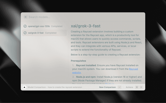 • Compare Models: Ask the same question to multiple AI models and compare their responses