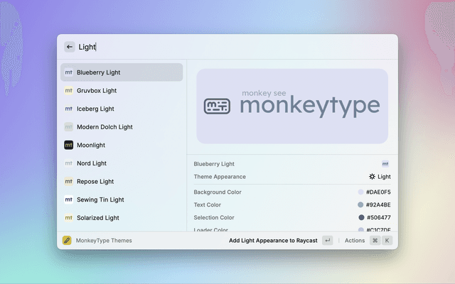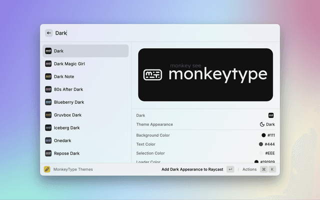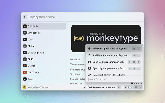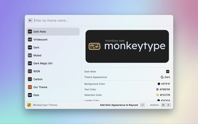 The Raycast Extension for setting Raycast theme with MonkeyType Theme colors.