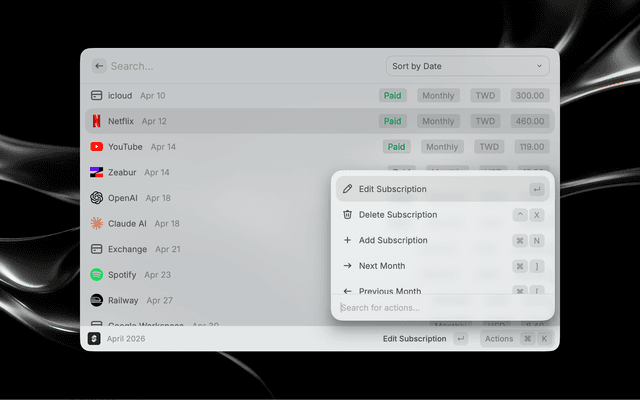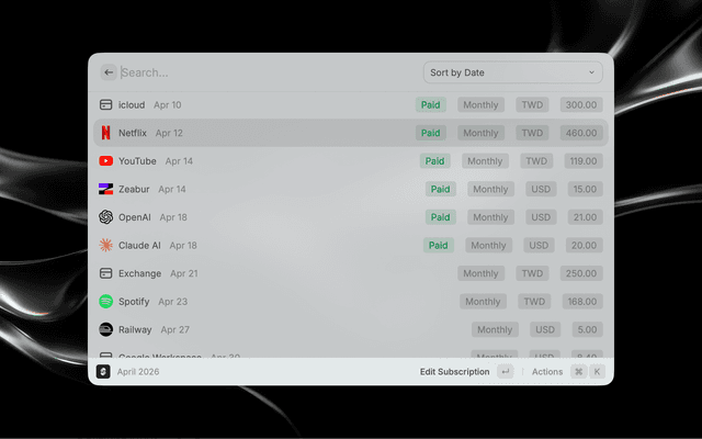 Manage your subscriptions with Subflow directly from Raycast.