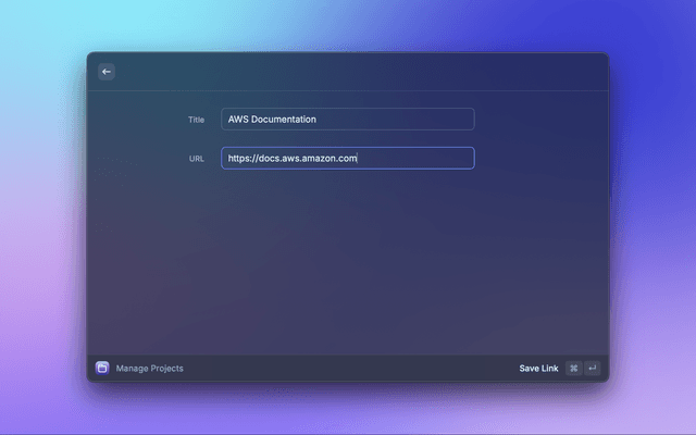 Cmd + N)Cmd + N)Cmd + N: Create new project/linkCmd + E: Edit project/linkCmd + C: Copy link URLCmd + Shift + O: Open all linksCmd + Shift + Backspace: Delete itemIf you encounter any issues or have suggestions, please file them in the Raycast Extensions Repository.