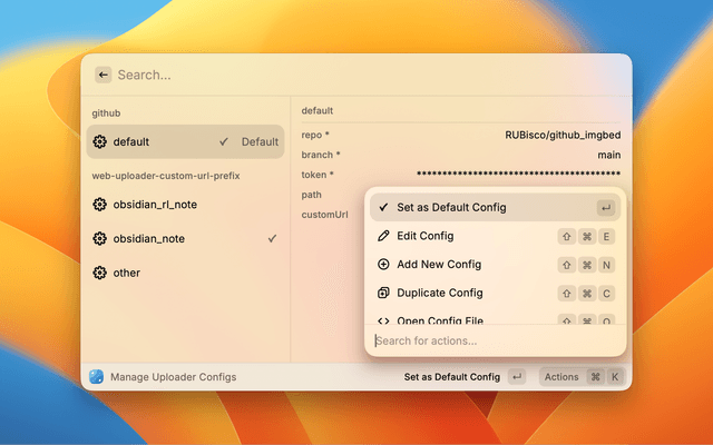 • Multi-Config Support: Switch between different uploader configurations easily within Raycast.