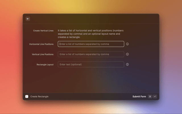 NUMBER,NUMBER,NUMBER]&layout=STRING?It takes a list of horizontal positions (number) and vertical positions (number) and an optional layout name and creates a multiple vertical lines.