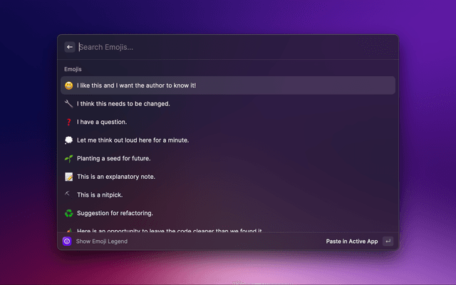 A simple emoji legend to help convey intention and added meaning in code review comments.