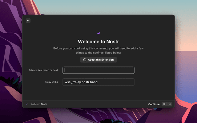A Raycast extension that lets users publish notes to Nostr.