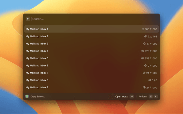 This extension currently only supports copying text from the subject line of emails in your mailtrap inboxes with plans to expand the available commands over time.