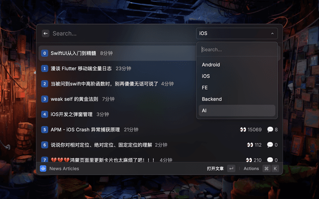 Display recommended articles under each category of Juejin, and support the selection and switching of different types of articles