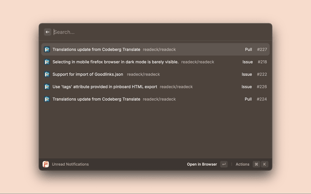 Work with issues, pull requests, manage workflows, search repositories and stay on top of notifications