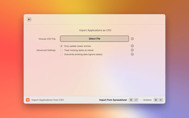 • CSV Import: Bring applications in with newer-wins conflict handling and advanced options