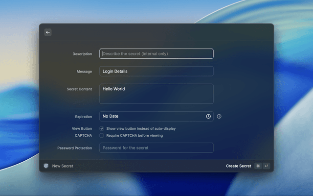 • 🔐 Create Encrypted Secrets - Create secure, one-time view secrets with client-side encryption
