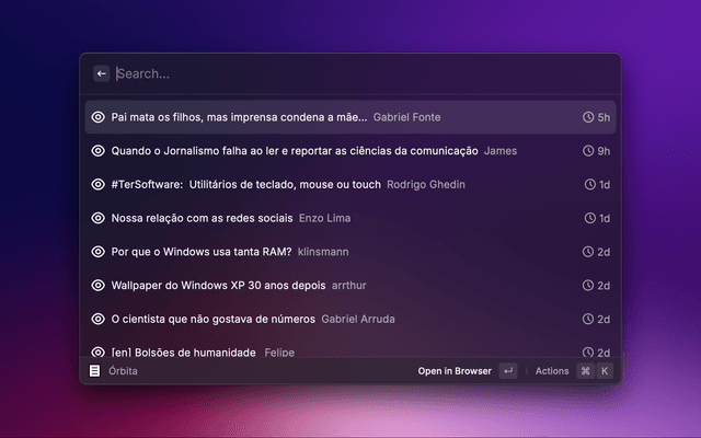 Raycast extension to list the latest posts from the Órbita, the Brazilian hacker news maintained.