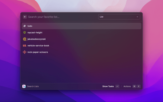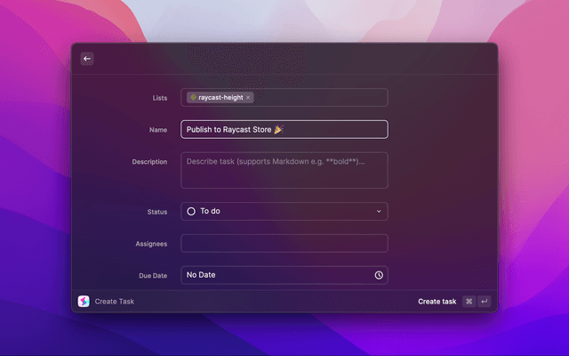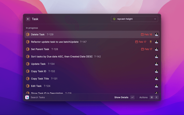 Search, create and manage tasks and lists in Height directly from Raycast.