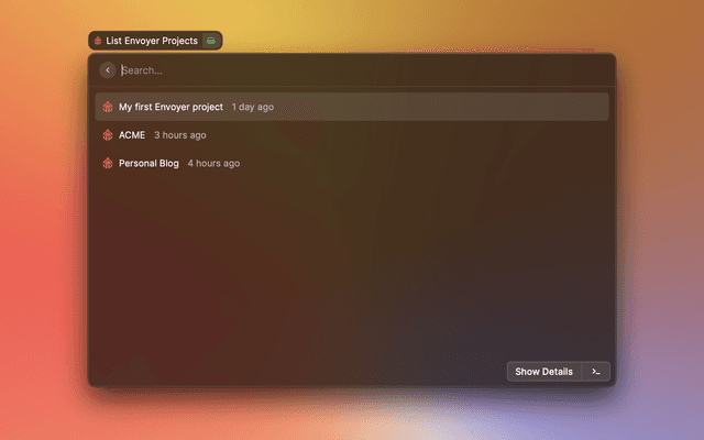 Now you should be able to manage your Envoyer projects with Raycast 🚀.