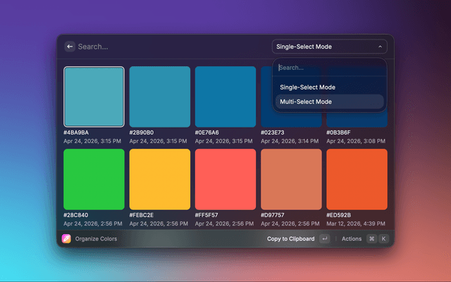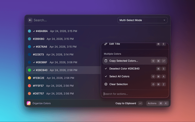 pick-color: This launches the main color picker interface.color-wheel: Opens the interactive color wheel for precise hue selection.organize-colors: Allows you to manage and categorize your color palettes.Pro tip: These commands can be customized or aliased in your Raycast preferences for even quicker access.
