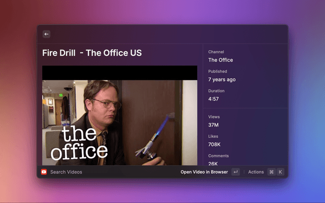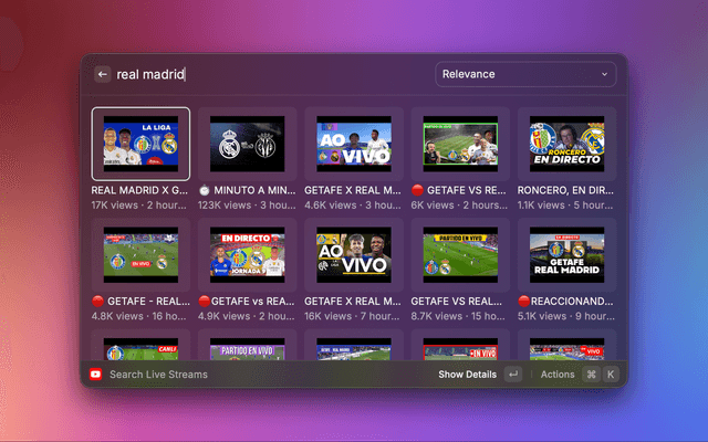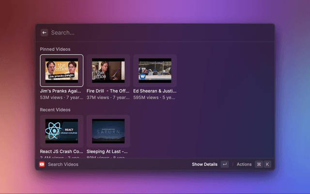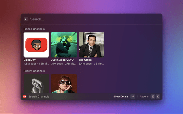 Now you should be able to search videos and channels on YoutTube with Raycast 🚀.